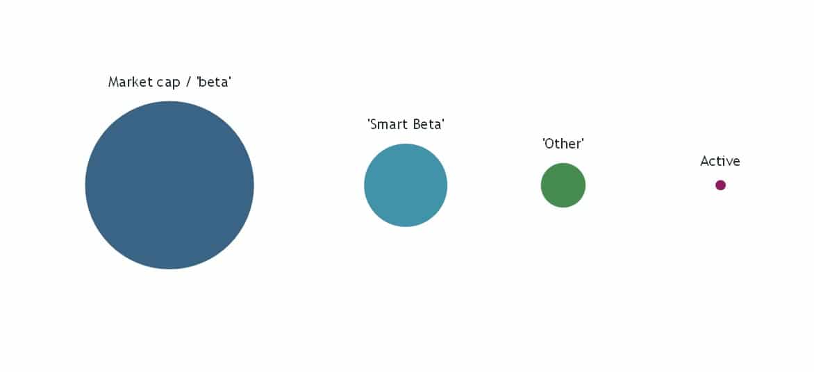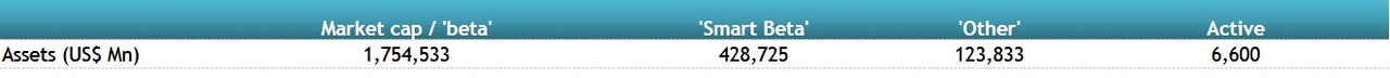 Comparison of assets in market cap, smart beta, other and active equity products