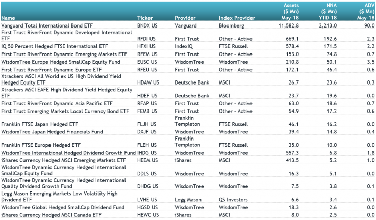 Currency Hedged ETF and ETP asset growth as at end of May 2018: US